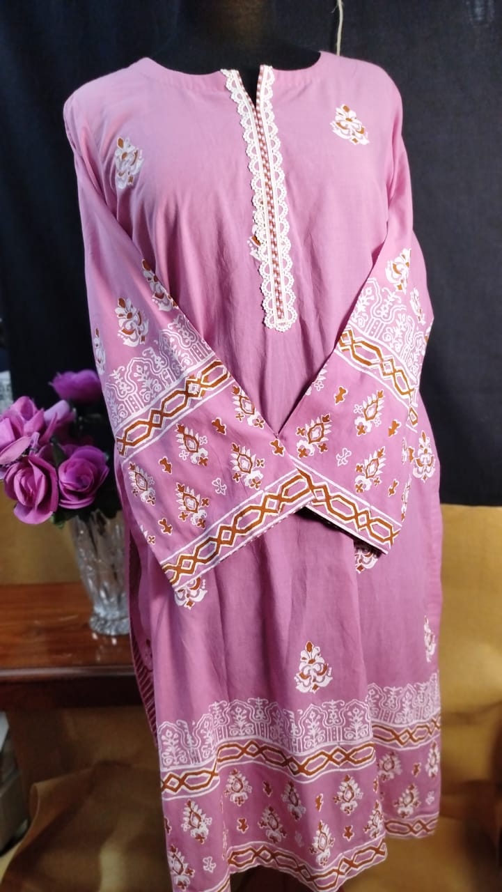 Indulge in luxury with our pink block printed stitched shirt. Crafted with the finest lawn fabric, this shirt exudes elegance and sophistication. The perfect blend of art and fashion, it is sure to elevate your style and leave a lasting impression.