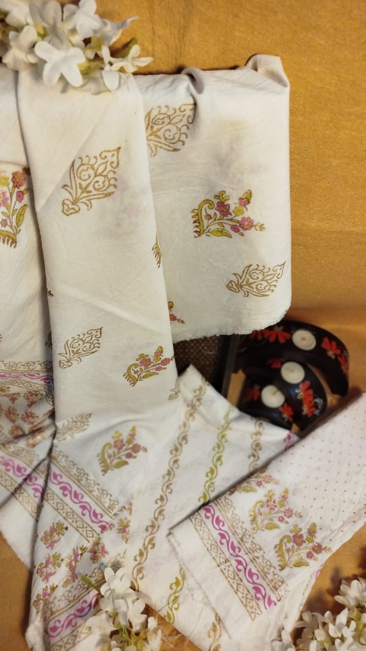 Floral Bloom – Hand-Blocked 3-Piece Unstitched Suit 🌸✨