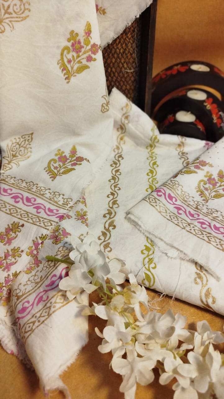 ✔ Unstitched Shirt – Beautifully hand-blocked with intricate patterns