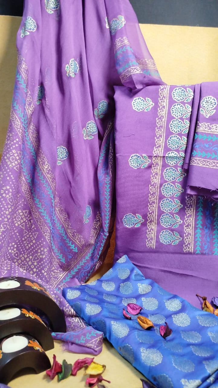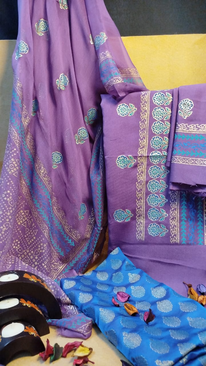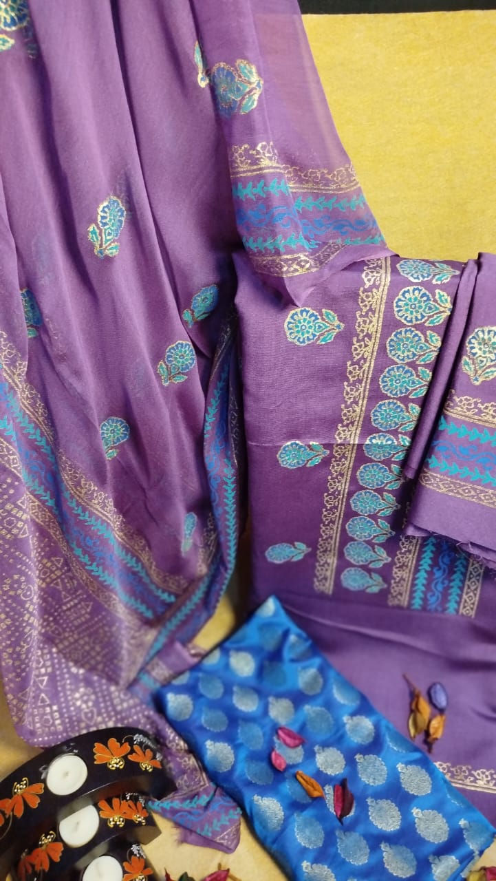 💙 Elegant 3-Piece Khaddi Net & Banarsi Suit ✨