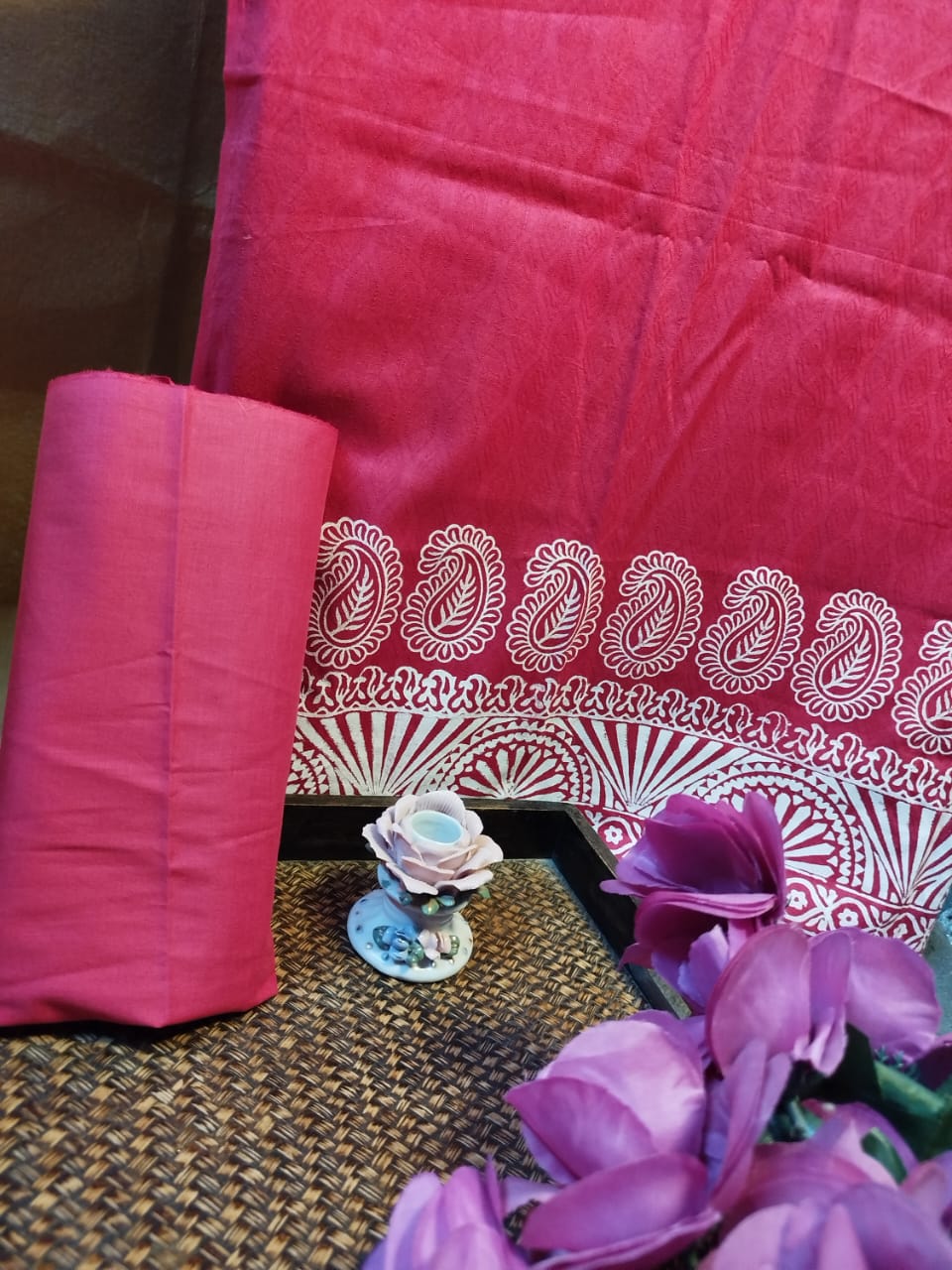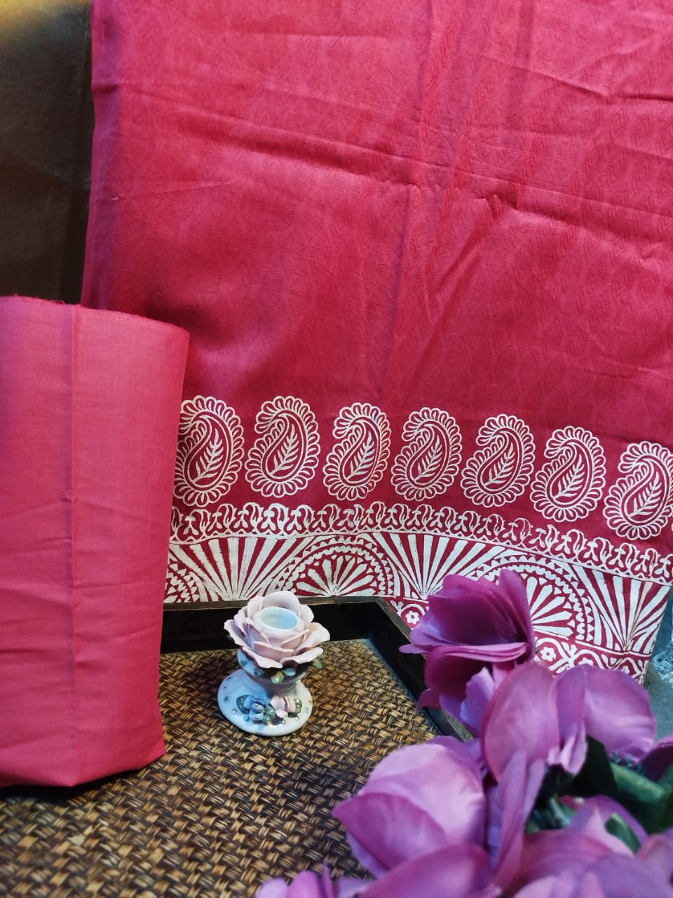 Expertly crafted jacquard lawn shirt paired with a cambric trouser, both unstitched. The beautiful white paisley block-print adds a touch of elegance. Perfect for a sophisticated and stylish look.