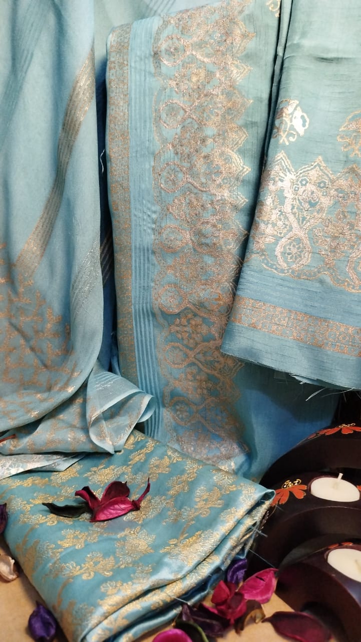 Ethereal Grace – Ice Blue & Turquoise Korean Silk 3-Piece Unstitched Suit ❄️✨