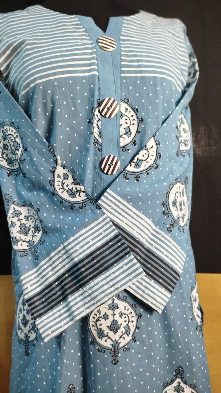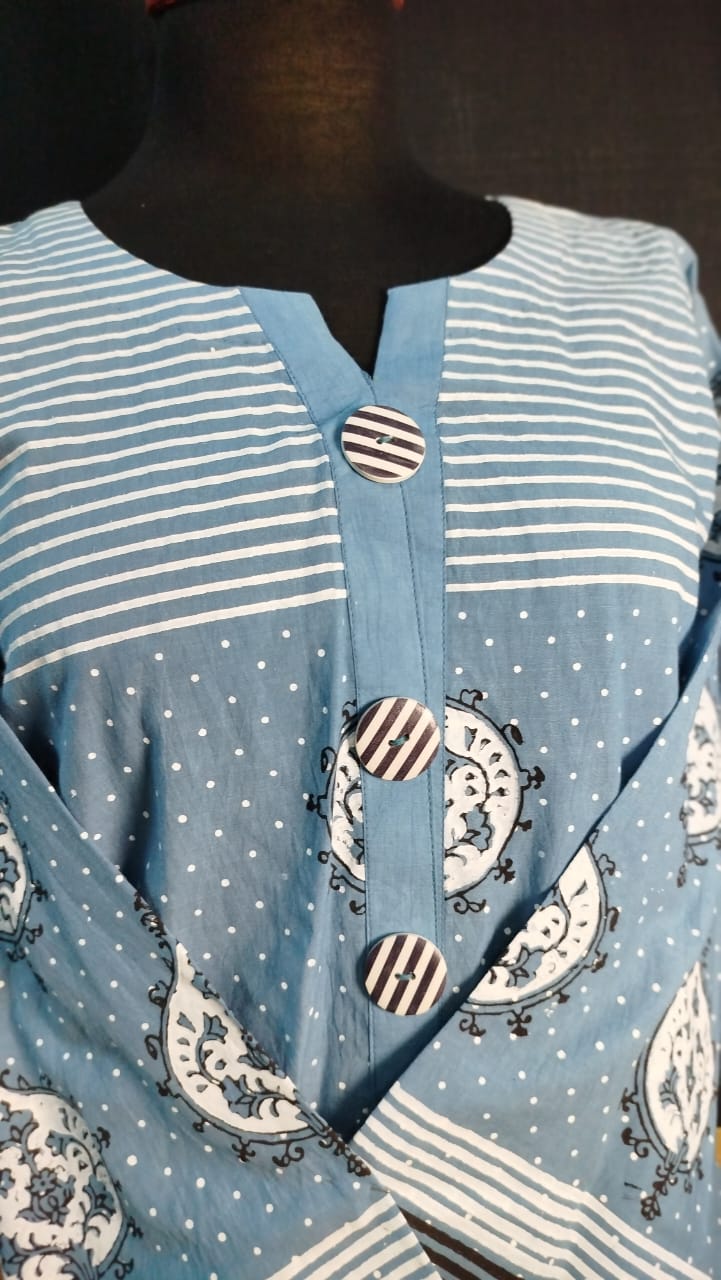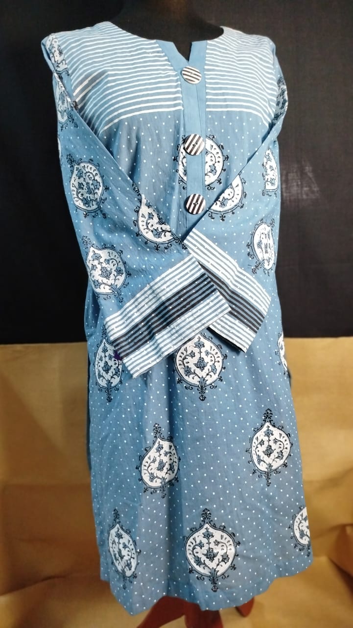This beautifully designed blue kurta/tunic features a harmonious mix of patterns, making it a standout piece for any wardrobe. Crafted from lightweight, breathable fabric, it offers both style and comfort for everyday wear.